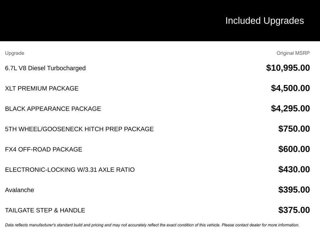 - Vehicle Name: Ford Super Duty F-350 SRW