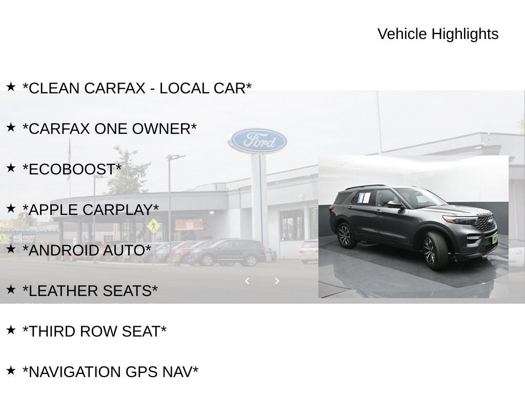 *CLEAN CARFAX - LOCAL CAR*, *CARFAX ONE OWNER*, *ECOBOOST*, *APPLE CARPLAY*, *ANDROID AUTO*, *LEATHER SEATS*, *THIRD ROW SEAT*, *NAVIGATION GPS NAV*, 4WD, 2020 Ford Explorer ST 4WD, Magnetic (Stock# F28771)