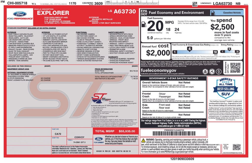 * 2020 KBB.com 10 Favorite New-for-2020 Cars * 2020 KBB.com 10 Best SUVs Worth Waiting For Price may not include tax title license and fees. A $200 negotiable documentary service fee may be added to the price of the vehicle. 2020 Ford Explorer Magnetic ST 3.0L EcoBoost V6