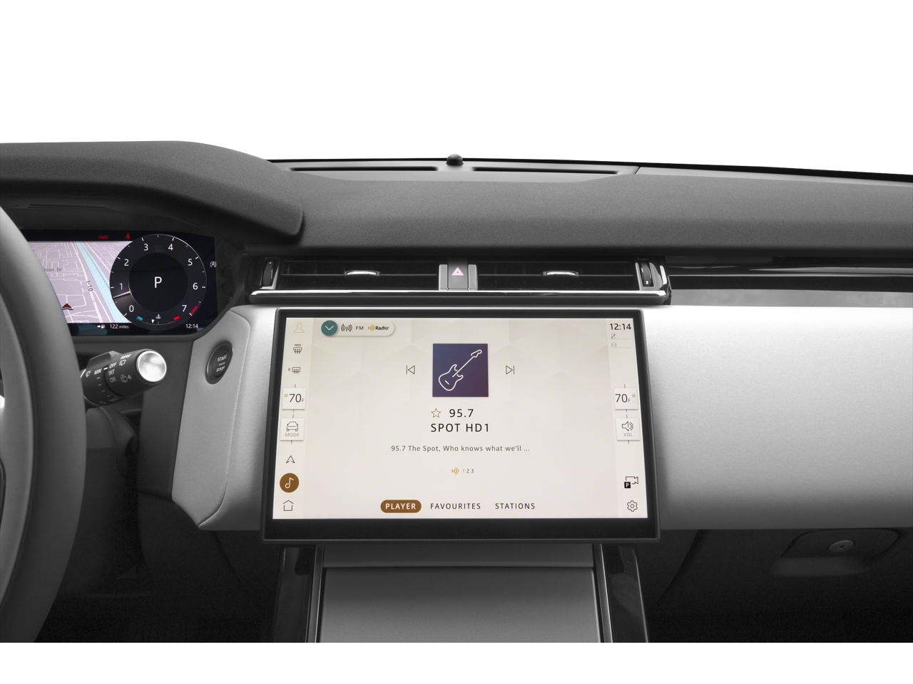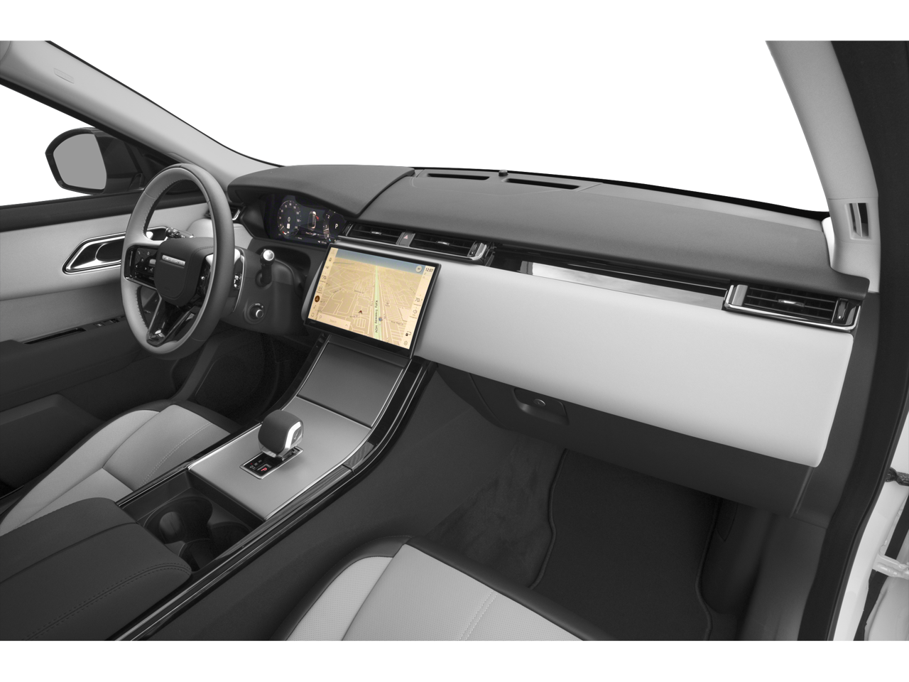Large infotainment display and digital interface typical of late-model Velar S for media, navigation and vehicle settings (as equipped; verify screen configuration and audio system on this VIN)