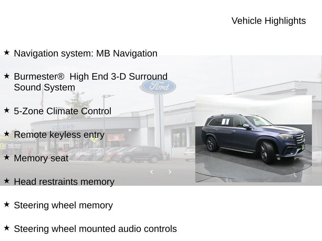 *CARFAX ONE OWNER*, *CLEAN CARFAX*, *SUNROOF MOONROOF*, *APPLE CARPLAY*, *ANDROID AUTO*, *LEATHER SEATS*, *THIRD ROW SEAT*, *NAVIGATION GPS NAV*, 3rd row seats: split-bench, 5-Zone Climate Control, 7-Seat Configuration, Adaptive suspension, Apple CarPlay®/Android Auto®, Auto tilt-away steering wheel, Auto-dimming door mirrors, Auto-dimming Rear-View mirror, Auto-leveling suspension, Burmester® High End 3-D Surround Sound System, Four wheel independent suspension, Front Bucket Seats, Head restraints memory, Heated and Ventilated Power Front Seats with Memory, Heated door mirrors, Heated front seats, Illuminated entry, Leather steering wheel, MB-Tex Upholstery, Memory seat, Navigation system: MB Navigation, Power door mirrors, Power driver seat, Power passenger seat, Rain sensing wipers, Rear window wiper, Reclining 3rd row seat, Remote keyless entry, Speed-Sensitive Wipers, Split folding rear seat, Steering wheel memory, Steering wheel mounted audio controls, Turn signal indicator mirrors, Variably intermittent wipers, Ventilated front seats.